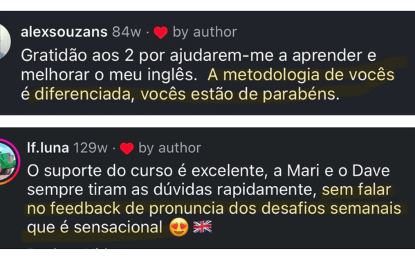 Assim, você ganha confiança para falar inglês de forma natural e espontânea, sem decorar frases e vocabulário que nunca vai usar, sem estudar sozinho e com a certeza de estar evoluindo de verdade.