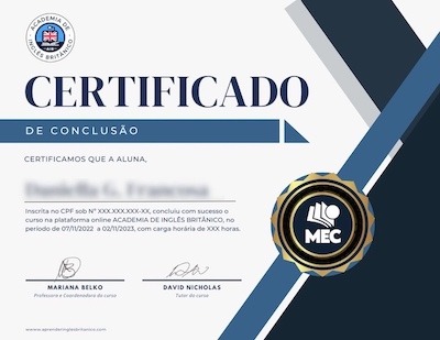 Sim! Somos o único curso de inglês britânico no Brasil com certificação reconhecida pelo Ministério da Educação (MEC).